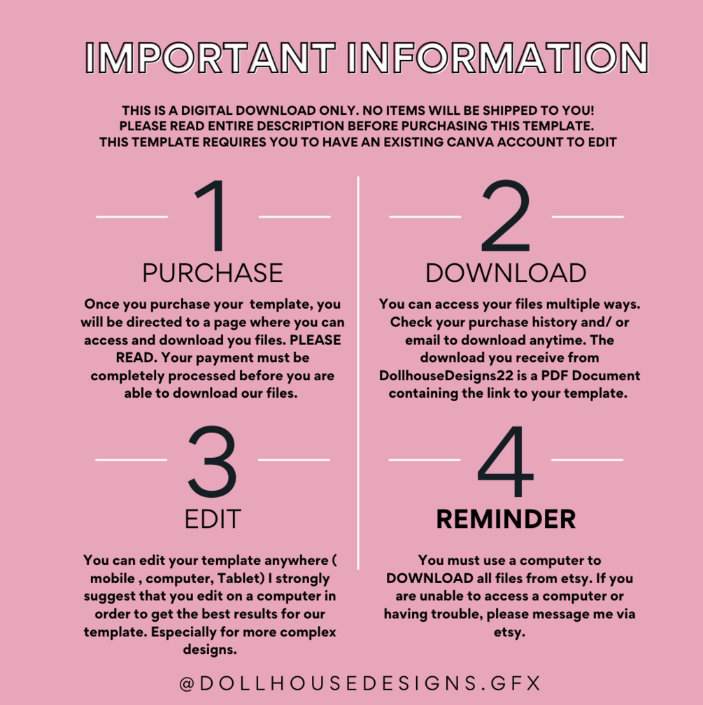 After purchase you will receive a PDF located in your etsy account under Purchases. Open that file and begin to edit your template!